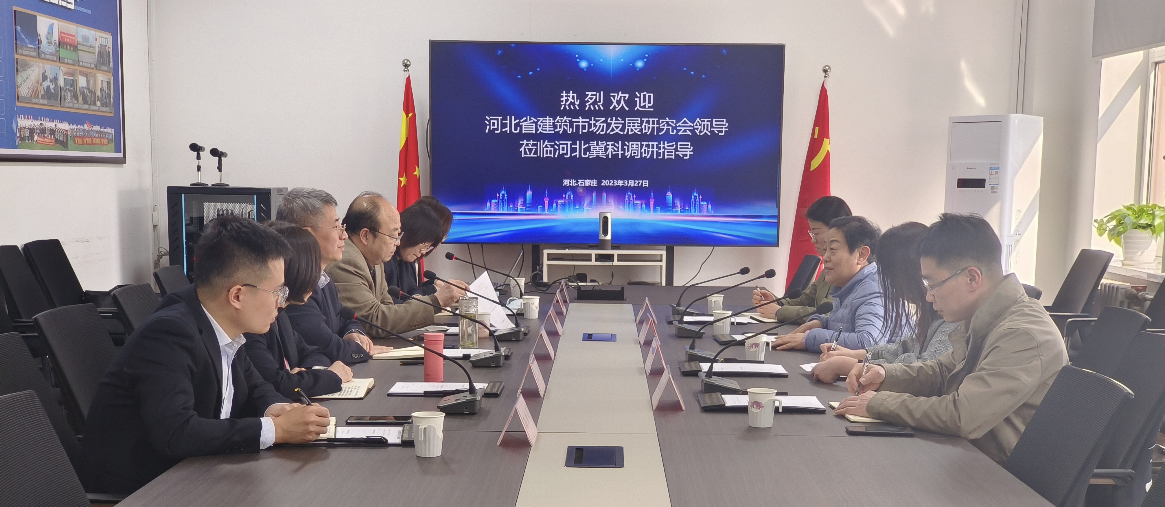 3月27日,河北省建筑市場發展研究會黨支部書記、副會長王英,秘書長穆彩霞,副秘書長王崇,黨辦主任石瓊到河北冀科公司開展黨建主題調研活動。河北省建筑科學研究院有限公司副總經理、冀科公司執行董事杜玉川,冀科公司總經理郭建明,黨政辦、科技創新中心、數字技術中心、技術部相關負責人參加了此次調研交流。