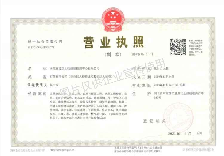 河北省建筑工程質量檢測中心營業執照